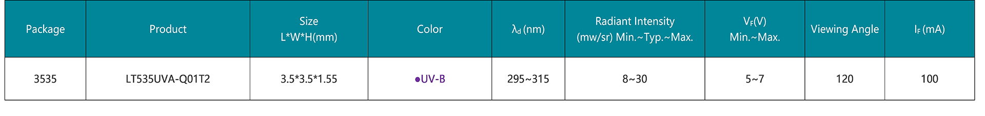 CHIP LED封裝的3535正貼UVB產(chǎn)品