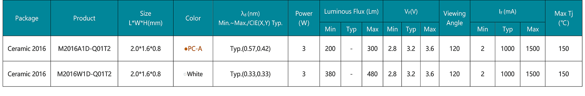 微型化陶瓷封裝/高導(dǎo)熱率/低熱阻/熒光膜工藝/顏色一致性/無(wú)黃斑/符合AEC-Q102要求標(biāo)準(zhǔn)/產(chǎn)品發(fā)光角度120°/無(wú)鹵環(huán)保/1000mA驅(qū)動(dòng)/MSL 2A/朗伯體發(fā)光