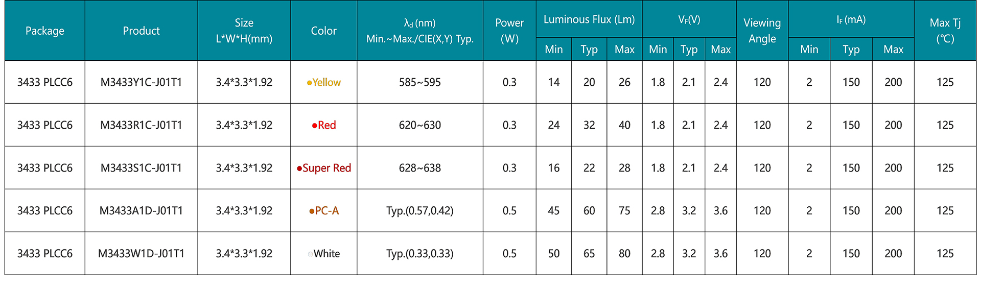 3433系列采用大面積銅基底結(jié)合PLCC 封裝結(jié)構(gòu)保證了產(chǎn)品的氣密及密封性,并能承載大尺寸芯片滿足汽車(chē)外飾應(yīng)用需求的高亮度及效率,符合汽車(chē)產(chǎn)品標(biāo)準(zhǔn)